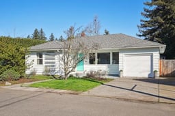 This light and bright well-maintained home is a gem, offering mid-century vibes, as well as modern updates throughout. This house is a perfect place for those who are looking for a peaceful retreat and who also love to entertain. The layout flows nicely, with the two bedrooms & updated bathroom to one side of the living room and the formal dining room, eat-in kitchen, and multi-use laundry/office that leads in to the garage on the other. Double French doors lead from the kitchen to a spacious deck and the meticulously landscaped fully fenced oversized lot. The yard is filled with carefully planted edibles in raised beds and is brimming with flowers and native plants, as well as pear and apple trees in the front yard. The backyard also offers a detached workshop that can be used as an office, workout room, music or art studio or for anything else your heart desires. Storage abounds with spacious closets & built-ins, as well as a generously-sized loft in the attached garage. RV parking, central AC, a welcoming front patio, fresh interior paint throughout, a new electrical panel and water heater, & a freshly updated crawlspace, coupled with vintage features like coved ceilings, picture rail, & large picture windows make this house a truly rare find! With proximity to major buslines, MAX, the transit center, as well as 205 & 84, commuting is an absolute dream, no matter what your preferred mode of transportation is.